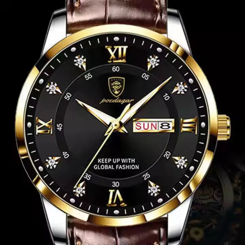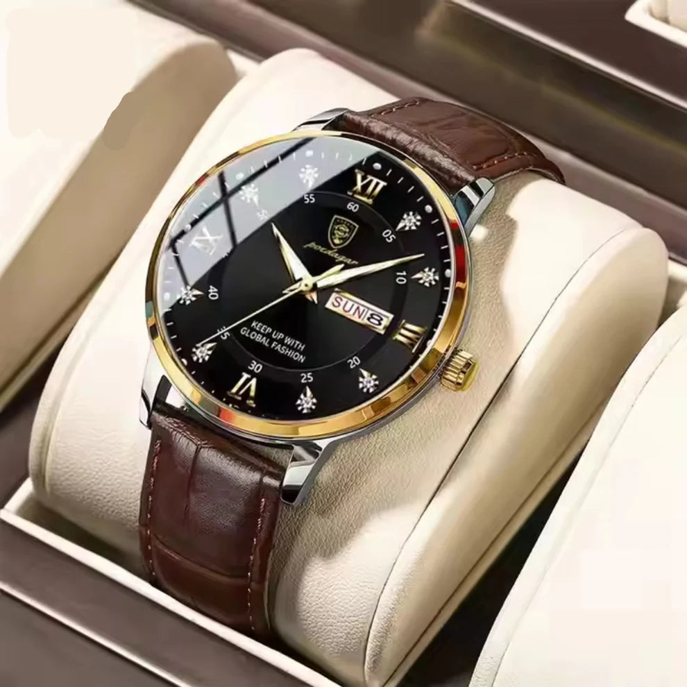 Fashion Business Casual Waterproof Luminous Date Leather Wrist Watches